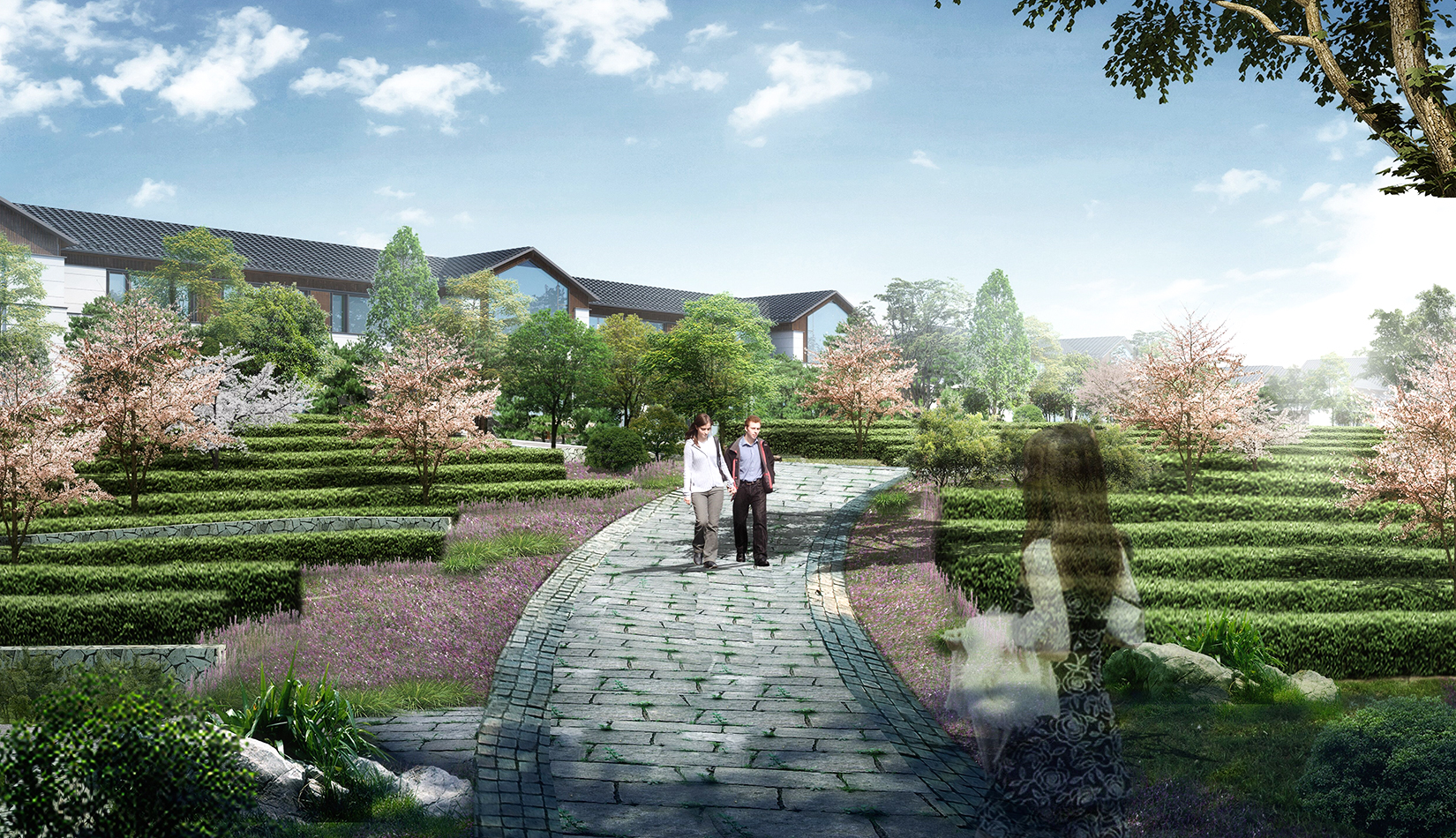 以“鄉(xiāng)村振興” 為背景,以“藏馬山居生活”為目標(biāo)核心,項(xiàng)目把東方田園與住區(qū)生活融為一體、貫穿自然生態(tài)、海綿城市的設(shè)計(jì)理念。景觀設(shè)計(jì)挖掘藏馬山的特色文化,延續(xù)當(dāng)?shù)鼐G色生態(tài)、山野趣味的自然風(fēng)貌,通過(guò)場(chǎng)景化的展示,融入到景觀設(shè)計(jì)中,打造特點(diǎn)鮮明、各有特色的入口體驗(yàn)、商業(yè)街區(qū)、山居生活三大板塊。
