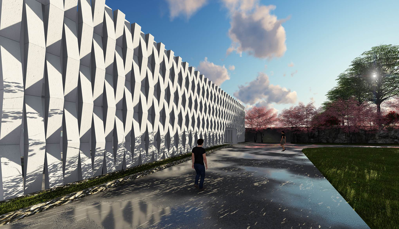 設(shè)計(jì)采用錯(cuò)層停車樓形式,各停車樓板標(biāo)高垂直錯(cuò)開半層,形成兩部分停車空間的多層停車樓,因而簡化了坡道的結(jié)構(gòu),能夠有效地節(jié)省建筑空間。